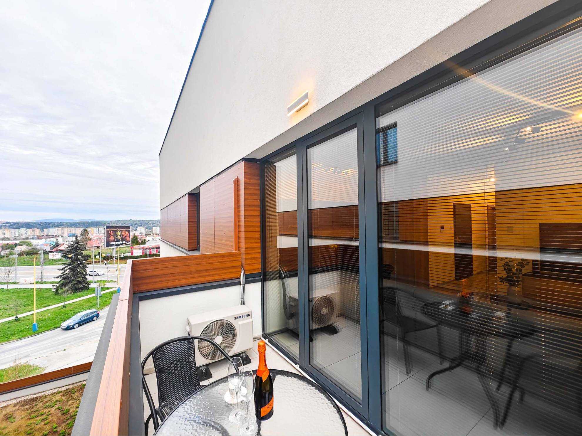 Byt pozostáva zo štýlovej obývacej izby prepojenej s modernou kuchyňou, samostatnej spálne s dostatkom úložného priestoru, kúpeľne s WC a loggie s príjemným výhľadom, ktorá je ideálna na oddych. V byte je klimatizácia. Súčasťou bytu je aj pivnica.